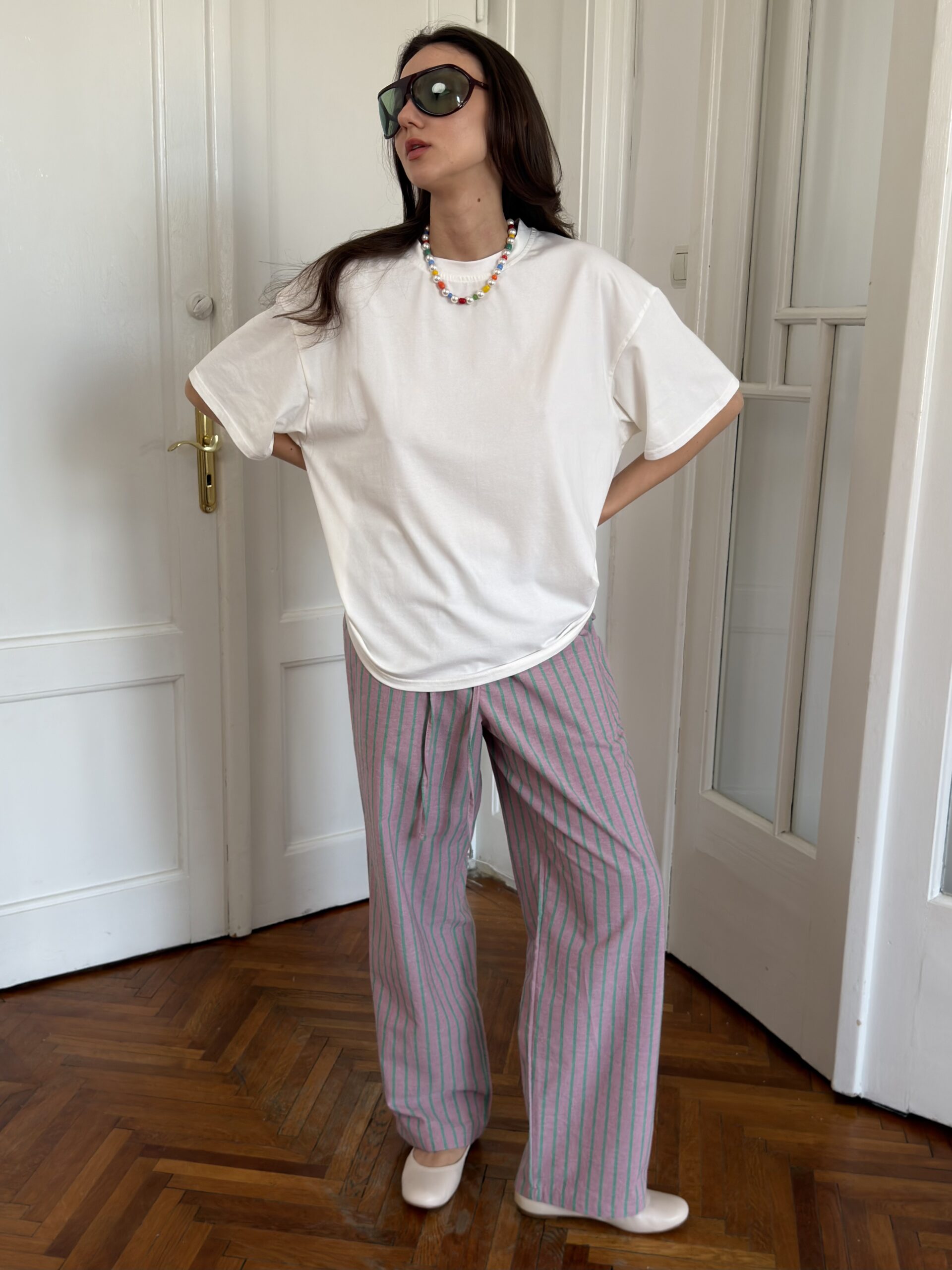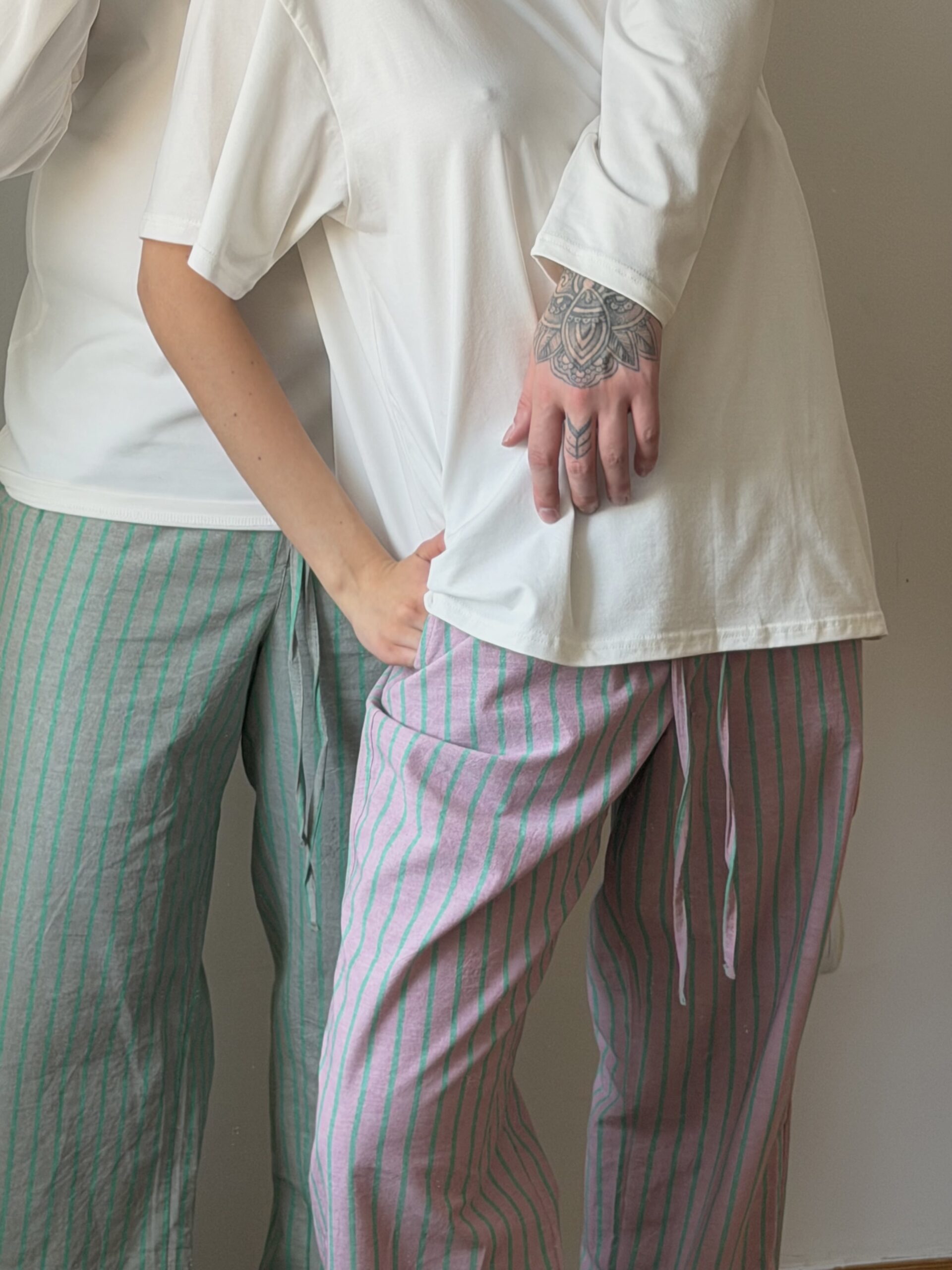 два соковиті смугасті відтінки: рожевий та сірий в бірюзову смужку, що кричать: весна вже тут і далі буде тільки тепліше!